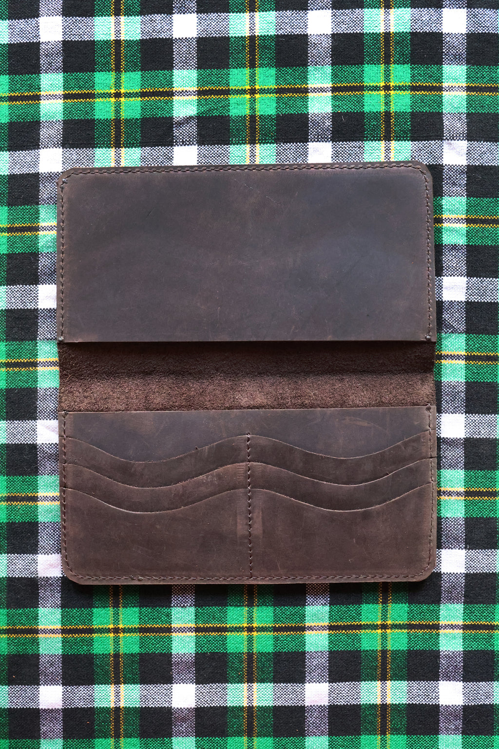 Wallet measures approx. 4.5 inches wide and 8 inches tall when closed