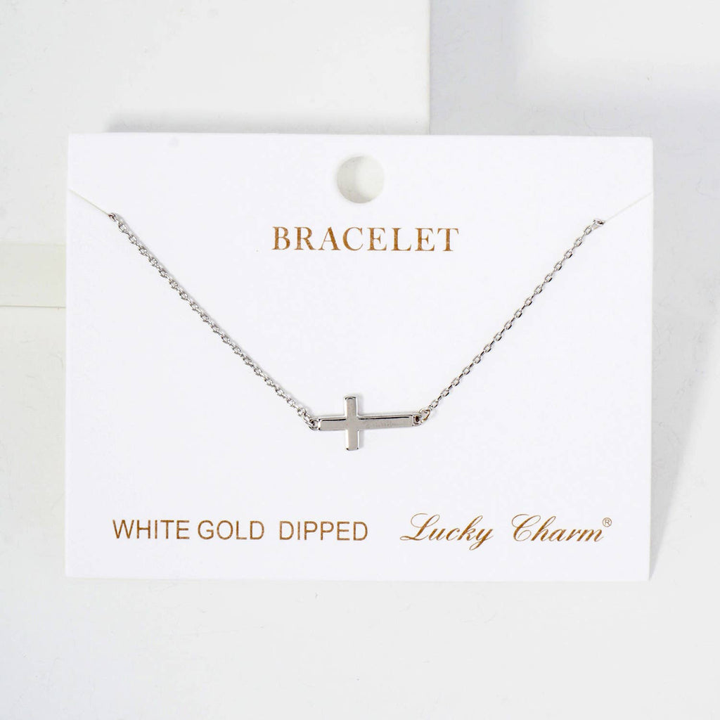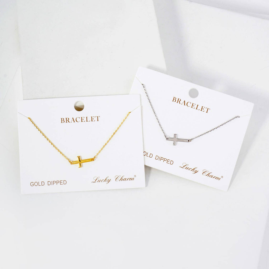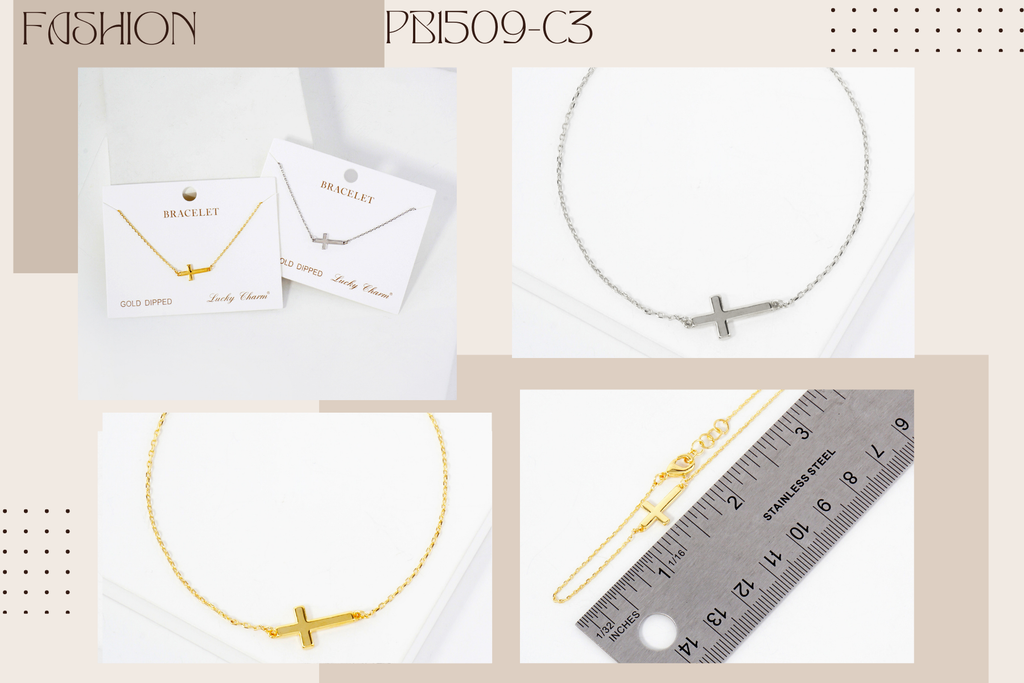The bracelet combines faith and elegance in a sophisticated design. The polished brass chain is dipped in 18K gold, giving it a luxurious and durable finish. Adorned with sideways cross accents, the bracelet symbolizes faith and spirituality with a modern twist. Its versatile design makes it perfect for both casual and formal outfits, while the timeless gold finish ensures it can be worn daily or on special occasions, offering both style and meaningful symbolism.
