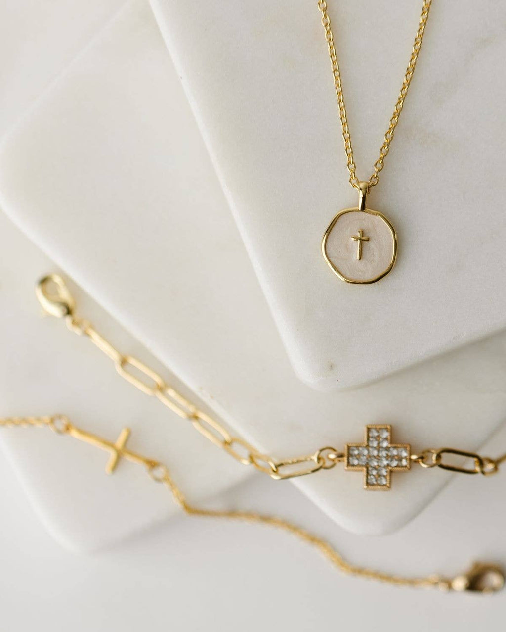One of our new best-sellers, our Emily Necklace is a modern addition to our spiritual jewelry line. We love with the dainty black and gold enamel disc with tiny gold cross for gifting, but don't forget to grab one for yourself, too! With its adjustable length, the Emily Necklace makes a perfect gift for all ages; think confirmations, baptisms, Easter, or just because!