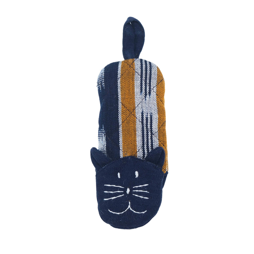 Made from 100% cotton, it effectively protects your hands from heat while handling hot skillet handles. With its clever design, this pot holder is not only functional but also decorative. Shaped like a friendly cat face, it features cute embroidered details and bright colors that add a playful touch to your kitchen decor.