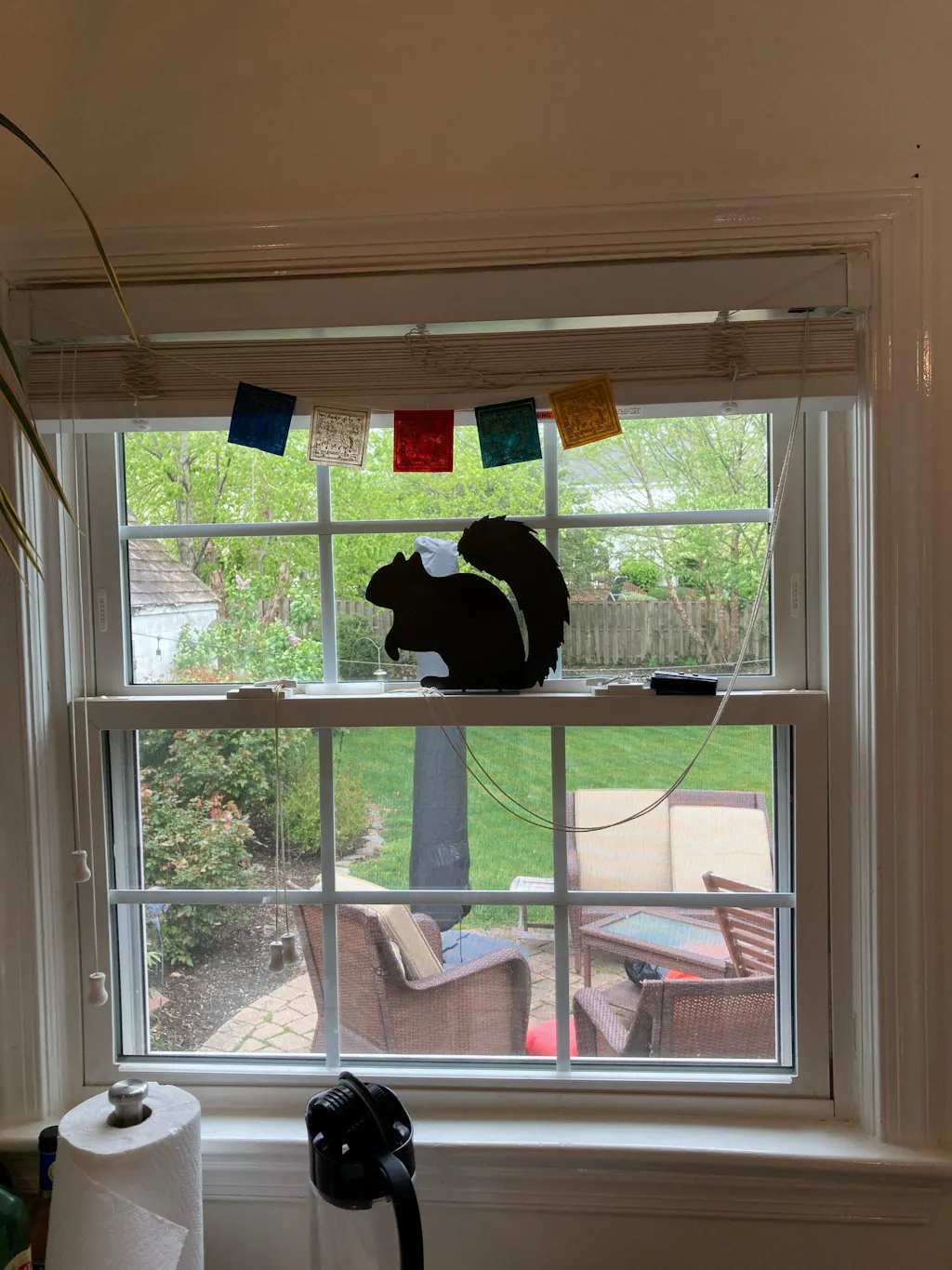Squirrel measures 8 inches tall and 9 1/2 inches wide.